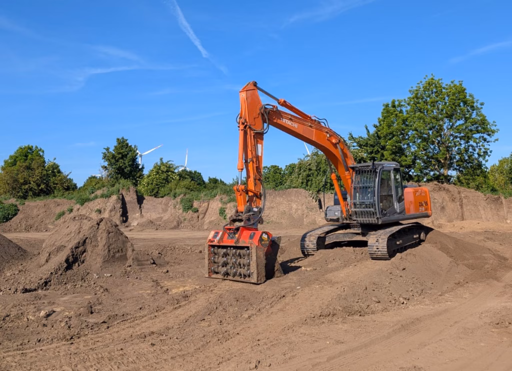 « Le godet ALLU fait exactement tout ce dont nous avons besoin : un criblage ni trop grossier, ni trop fin, juste ce qu’il faut pour ce type de sol », explique M. Kusebach, directeur général de Müller Beton Magdeburg.